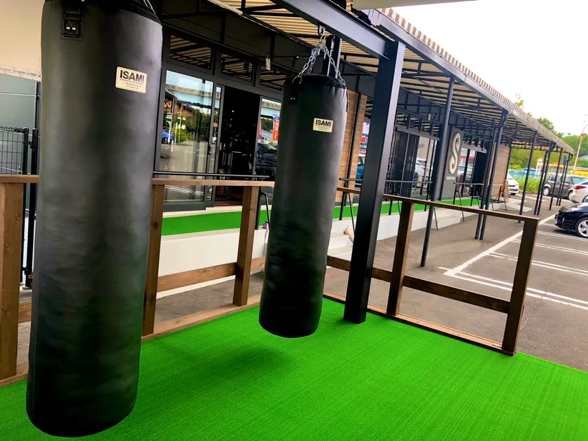 当ジムは現在、ビフォーコロナ期並みに利用者が戻り、24時間営業することができています。それは、空間づくりのプロだからこそ、ニューノーマルなジムを作ることができたのだと自負しています。新生活様式が発表されて間もなく、ジム業界団体のガイドラインが発表される前に、独自のアイディアでハード面を仕上げていきました。具体的には、向かい合わないマシーンの配置や既製品で取り付けられない網戸の追加、屋外のサンドバッグや人工芝の設置など、すぐに新たな形を構築しました。8月8日、eIGHT GYMはオープンから1周年を迎えます。大がかりなキャンペーンやイベントができない時だからこそ、既存の会員を大切にし、利用者の満足度を上げる取り組みを1か月行います。
