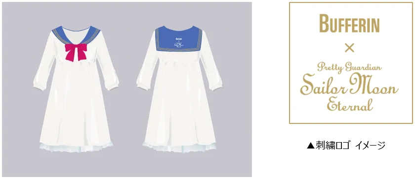 “スーパーセーラームーン”をイメージしたルームウェア。着心地の良い素材を使い、ふんわり広がるワンピースタイプです。(フリーサイズ:総丈101cm/袖丈59cm/肩巾42cm/バスト100cm)背の襟部分には、今回のコラボレーションキャンペーンを記念した刺繍がデザインされています。キャラクターのコスチュームがルームウェア仕様になっており、キャラクターの気分を味わいつつもゆったりくつろぐことができます。とびきりのおうち時間を過ごしてみてください。