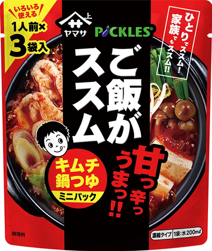 ご飯がススム キムチ×鍋つゆのコラボレーション! 「ヤマサ ご飯がススム キムチ鍋つゆ」第2弾として 「ミニパック 3食入」を8月20日発売