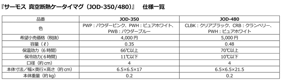魔法びんのグローバル企業として、人と社会に快適で環境にもやさしいライフスタイルを提案するサーモス株式会社(本社:東京都港区 社長:中條啓一郎)は、軽量・シンプルデザインで人気のスクリュータイプのケータイマグより新モデル『サーモス 真空断熱ケータイマグ(JOD-350/480)』を2020年10月1日(木)※ より発売します。