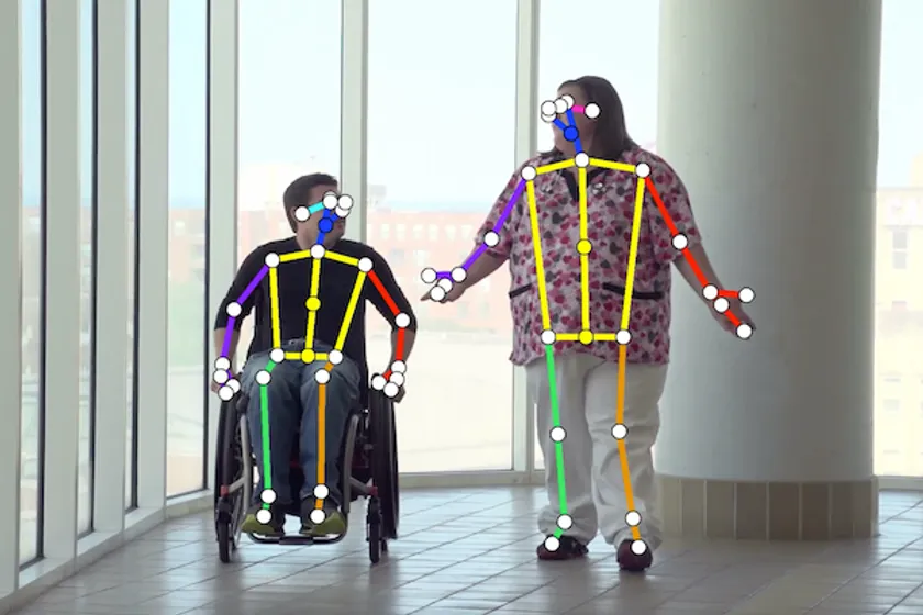 「VisionPose」は姿勢推定(Pose Estimation)と呼ばれる分野に分類される、画像から人物や動物の姿勢をマーカーレスで推定する当社独自のAI技術です。赤外線などによる深度センサつきカメラや、モーションキャプチャのような高額な専用デバイスを利用せず、通常のWEBカメラのみで深度を加味したリアルタイムな骨格検出が可能です。