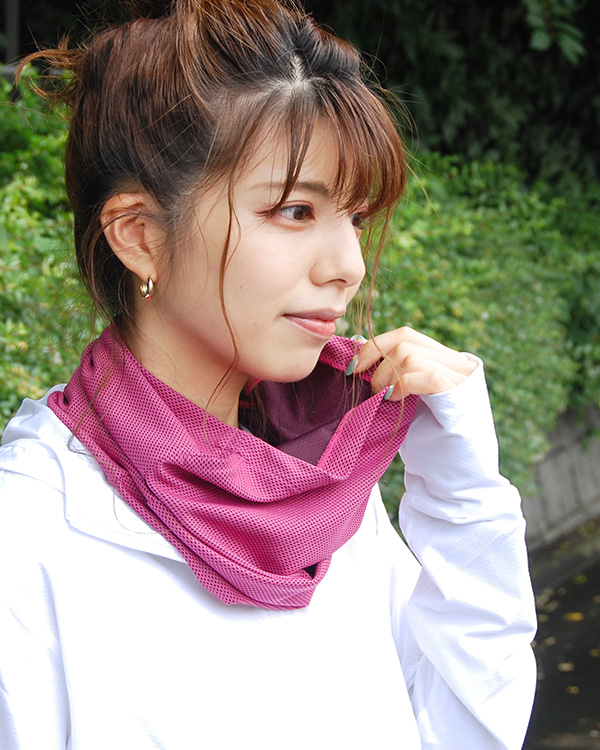 1. 濡らして絞るとひんやりと涼しい触感に、マスクに比べて呼吸もしやすくアウトドア・スポーツも快適