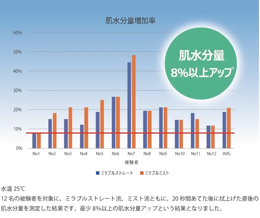 ミラブル肌水分量増加グラフ(棒)試験条件付き