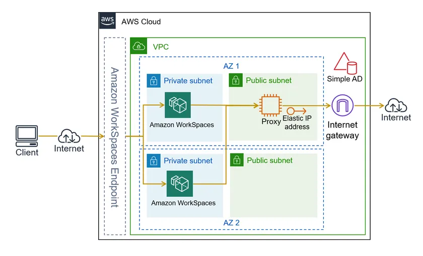 Amazon WorkSpacesは、マネージド型でセキュアなサービスとしてのデスクトップ(DaaS)ソリューションです。デスクトップ環境を数分でセットアップでき、月単位または時間単位のいずれかで料金を支払うことが可能です。マシンスペックの増減も簡単に行うことができます。