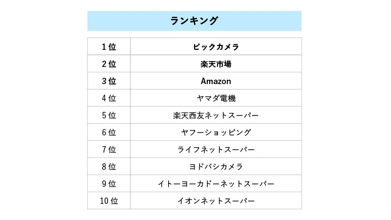 ランキング2位は「楽天市場」、3位は「Amazon」という結果になりました。