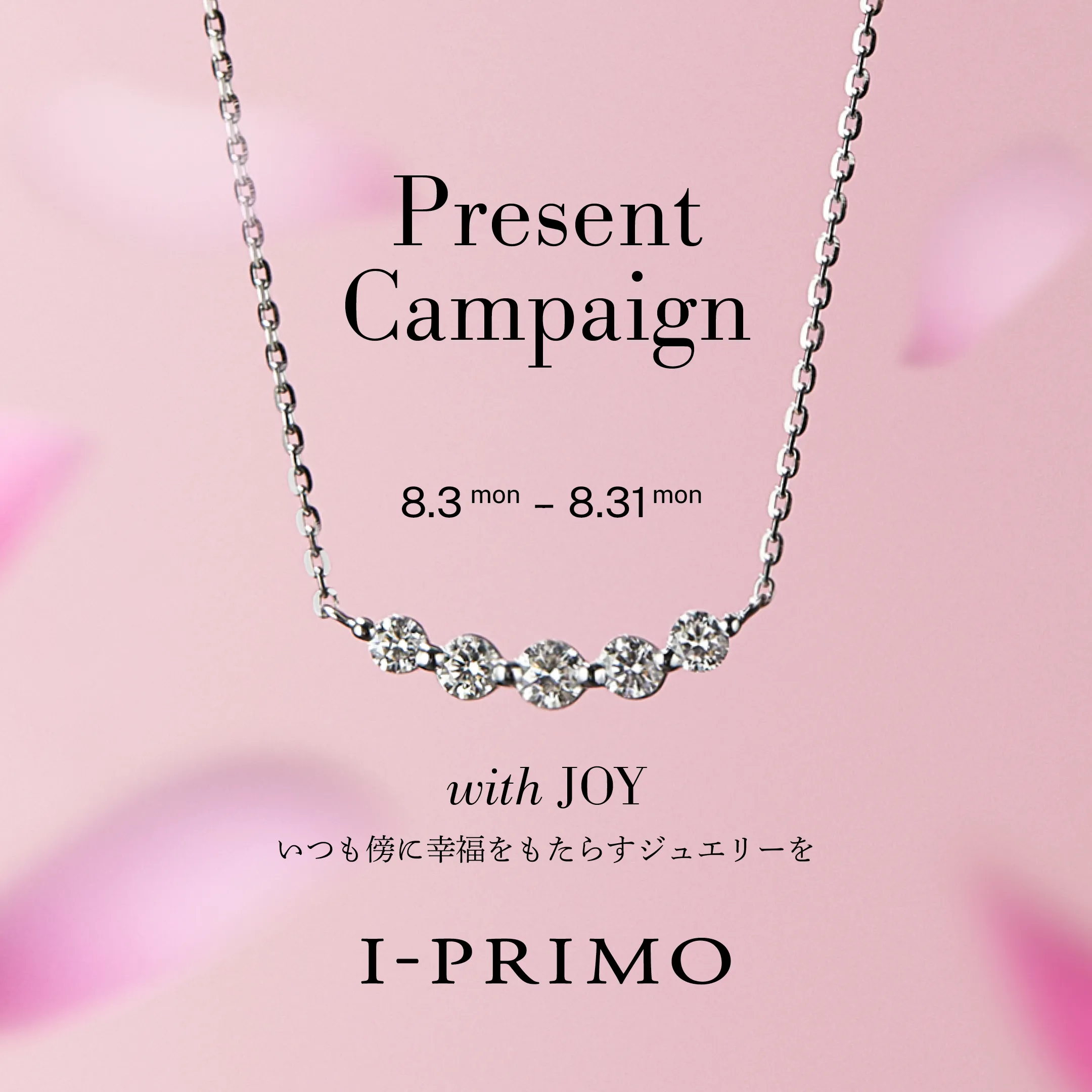 ブライダルジュエリーの企画・販売を行うプリモ・ジャパン株式会社が運営するブライダルリング専門店「アイプリモ」では、“いつも傍に幸福をもたらすジュエリーを”というメッセージを込めてインスタグラム プレゼントキャンペーンを8月3日(月)~8月31日(月)の期間にて実施いたします。