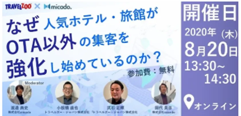■ホテルまたは旅館向けのセミナーでは、ご担当者様のみのご参加に限らせて頂きます。運営代行業社様やコンサルティング会社の方にはセミナーURLをお送りできませんのでご注意くださいませ。