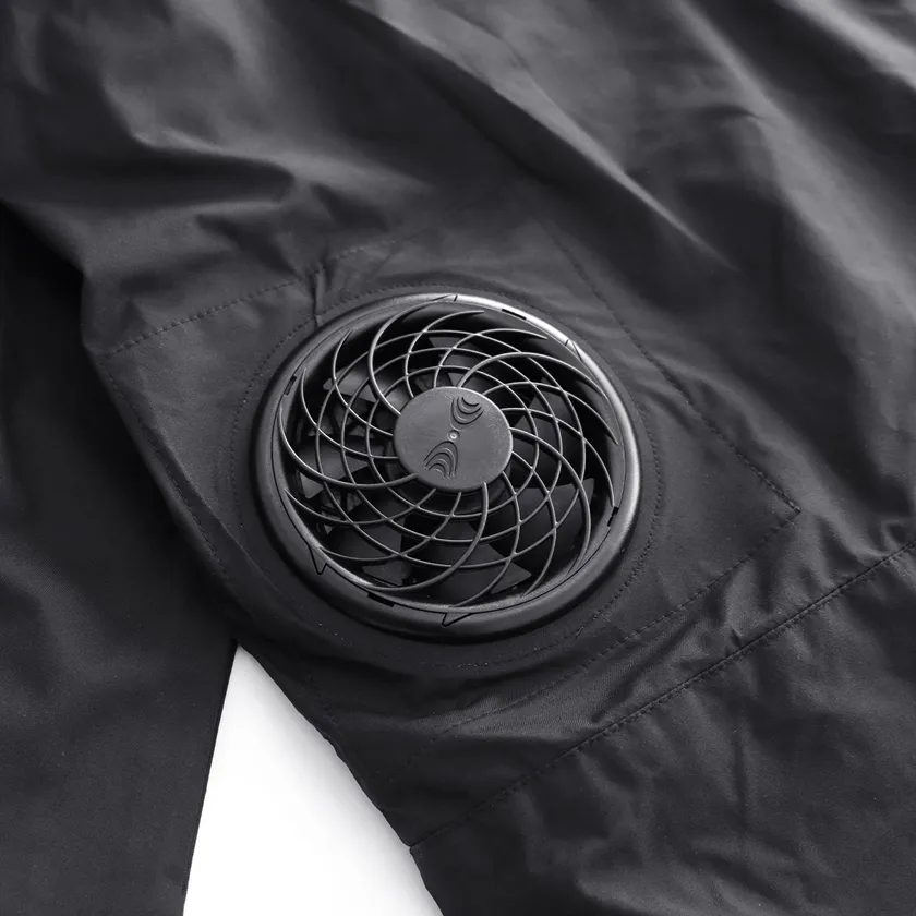 内部に搭載された2つの高性能ファンで衣服の中を空気循環させることで、「薄着よりも涼しい」を実現しました。
