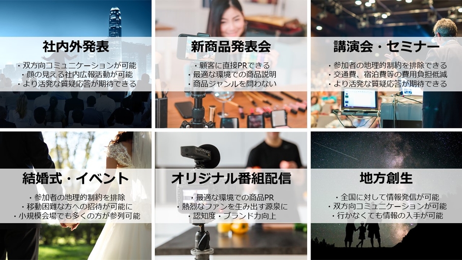 映像を用いて情報を発信することにより、より多くの情報を発信できるとともに即時性、双方向コミュニケーションを担保することができます。