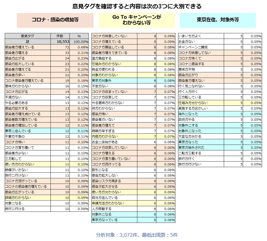 ●また「Go To トラベルキャンペーン」の仕組み、手続きが十分に浸透しておらず、この点も政府への不満を増加させているようです。特徴的な内容も踏まえ、以下に具体的な回答者の声を紹介します。