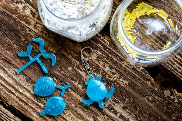 海洋プラスチックを再利用して作るウミガメキーホルダー