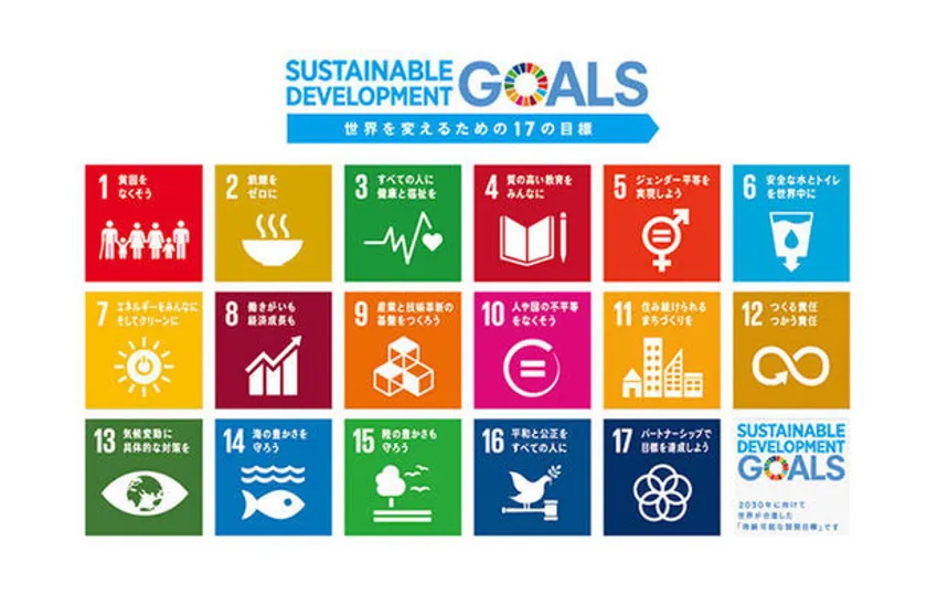 「SDGs」は世界全体の問題を解決するために考案された、国際社会共通の達成すべき目標のことであり、全部で17項目から構成されています。