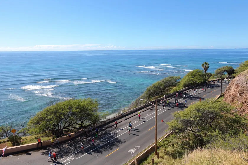 アラモアナ公園前をスタートした後、世界的に有名なワイキキビーチ、ダイヤモンドヘッドを経てハワイカイで折り返し、カピオラニ公園でフィニッシュするという壮大なシーサイドコース。ダイヤモンドヘッド付近の短い坂を除けば、ほとんどが平地という走りやすい設定になっています。