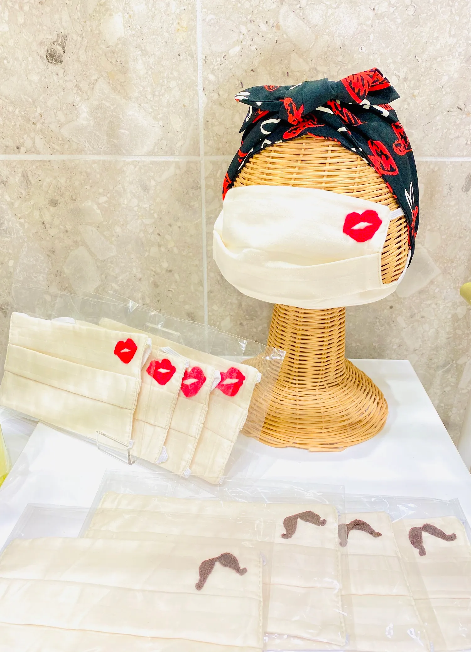 こんな時代だからこそ、日常的に使う物で明るい気持ちになってもらいたいという想いから、女性心をくすぐるようなキュートなリップの刺繍を施したコットン100%マスク。地球にやさしい無漂白のコットンを使用した環境にも肌にも優しいマスクです。洗って繰り返し使えます。生成りの色味が日本人の肌色にも良くなじみます。