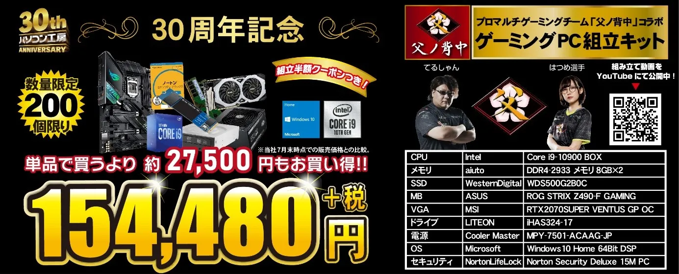 父ノ背中コラボ「30周年記念 ゲーミングIntel組立キット」お求めはこちら