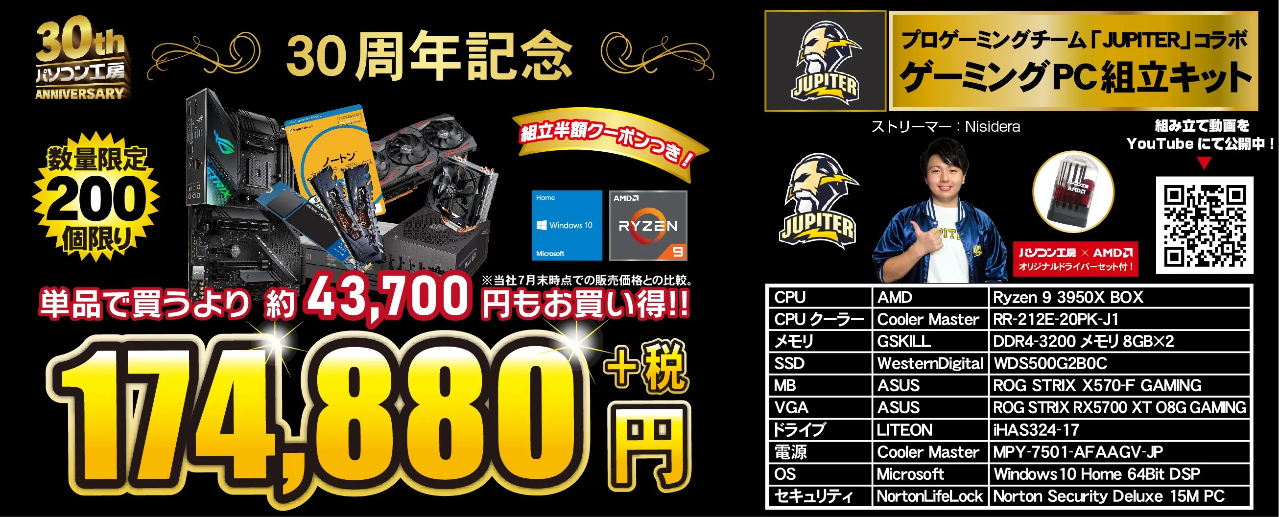 2.JUPITERコラボ「30周年記念 ゲーミングAMD組立キット」<数量限定 200 個>