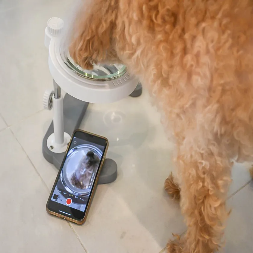 3.透明なガラスボウルなのでスマホで食事中のペットの撮影もできます。