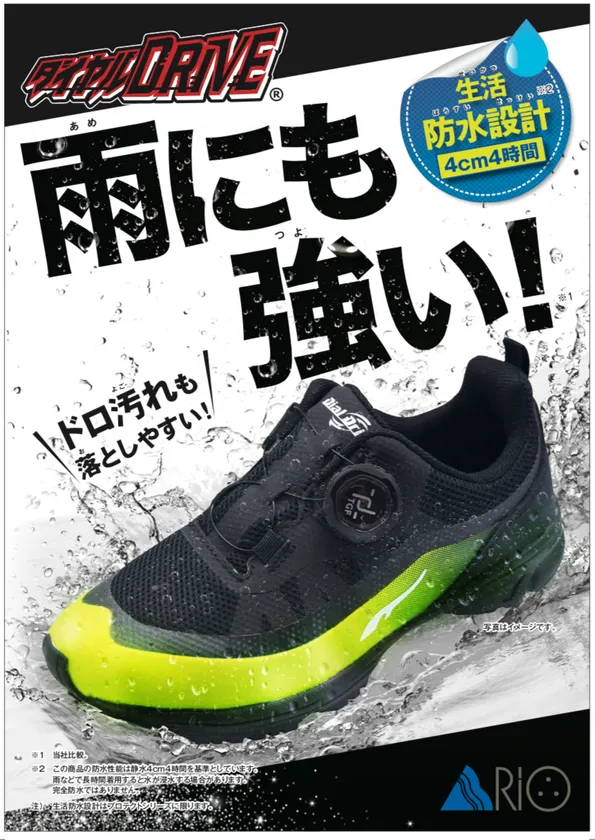 株式会社リオグループホールディングスは、ダイヤルDRIVEの生活防水設計シリーズの「プロテクト」を、9月1日より全国の靴専門店・量販店及びRIO ONLINE STOREにて数量限定で販売いたします。価格は¥4,500(+税)です。