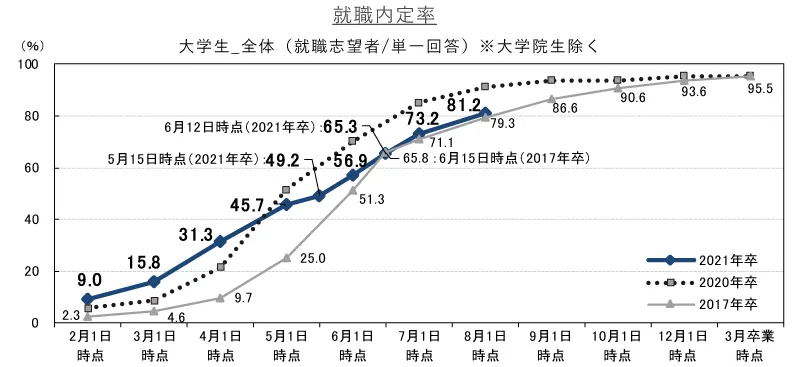 リクルートキャリア 就職みらい研究所 就職プロセス調査 (2021年卒)「2020年8月1日時点 内定状況」