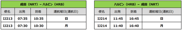 スプリング・ジャパン株式会社(本社:千葉県成田市、代表取締役社長:米澤 章、以下:スプリング・ジャパン)は、2022年冬ダイヤ国際線について以下の通り増便を決定し、昨日10月20日(木)より販売を開始しました。今回の増便により、成田=ハルビン線は週2便、成田=天津線については週1便の運航となります。
