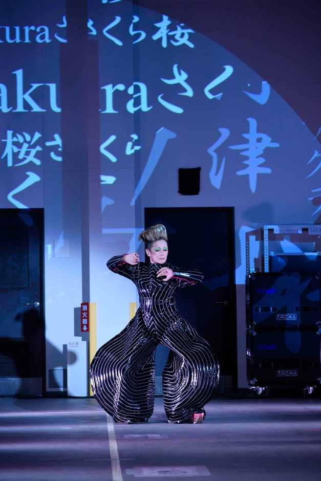 作曲家の吉田潔氏が日本元気プロジェクトのために新たにアレンジした日本の伝統歌曲「さくら」の音色とともにあらわれたのは歌舞伎役者 市川右團次と夏木マリ。それぞれ山本寛斎の代表作、「凧絵(1971年)」と「TOKYO POP(1973年)」を纏い、静かながらもエネルギー溢れるパフォーマンスを披露。寛斎のクリエーションに新たな息吹を吹き込みました。