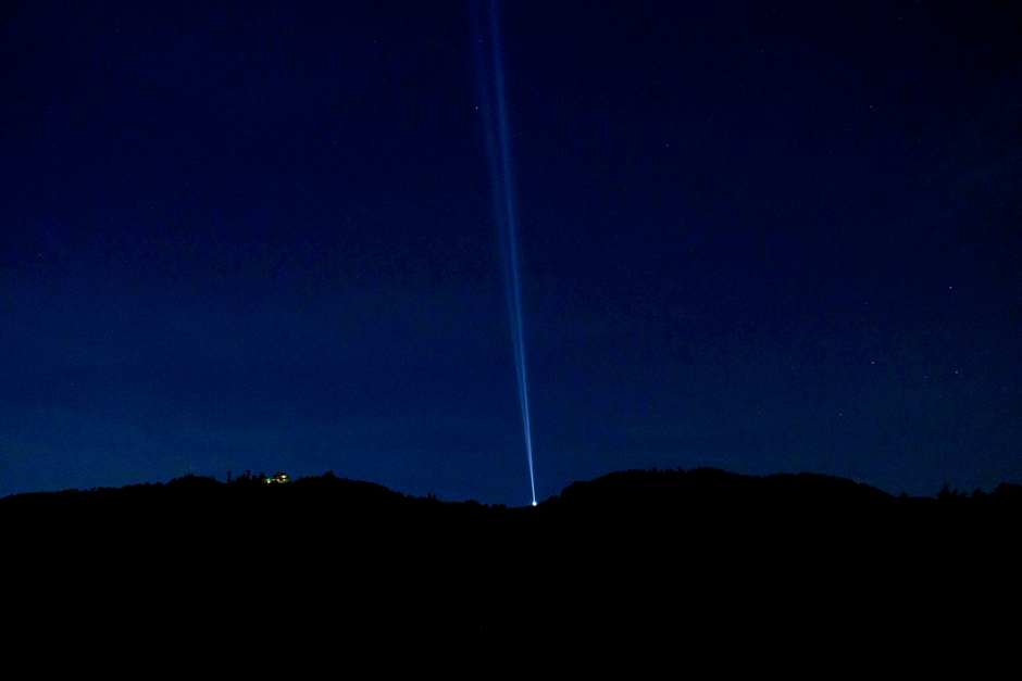 本プロジェクトが未来を照らす道筋となるよう願いを込め、比叡山山頂より放たれたサーチライトは過去の「日本元気プロジェクト」のダイジェスト映像とともに「諦めるな!なにがあっても 前に前に!だぞッ!!」と寛斎から日本中、そして世界中に向けてエールが送られました。