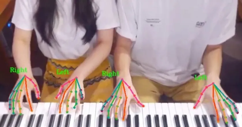 複数の手を同時に認識・追跡することも可能(男女2人のピアノ演奏の4つの手を同時捕捉)