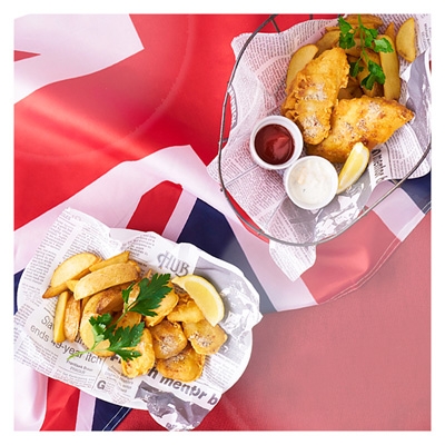 英国PUBといえばFISH&CHIPS!HUB・82でも定番のFISH&CHIPSで使用されているフィッシュフリッターをお届け。モルトビネガー(別売)と合わせればPUBさながらのテイストをお楽しみいただけます!真鱈を特製衣でプリフライした肉厚でジューシーな真鱈フリッター、大人気ひとくちサイズのスケソウダラのフリッターのセットとなっております。おうち御飯やお弁当、おつまみにお召し上がりください。