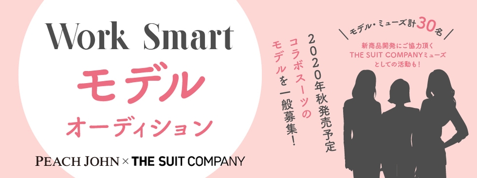 青山商事株式会社(本社:広島県福山市/代表取締役社長 青山 理)は、株式会社ピーチ・ジョン(本社:東京都港区/代表取締役社長 杤尾 学)と、働く女性用のセットアップスーツを共同企画し「ザ・スーツカンパニー」及び、「ホワイト ザ・スーツカンパニー」で10月1日(木)より販売します。これに先行して、今回の共同企画スーツの様々なプロモーションに起用するモデルを、一般女性の中から募集します。募集については、8月7日(金)から19日(水)の期間で、特設キャンペーンサイト(https://bit.ly/33vziYl)で実施します。