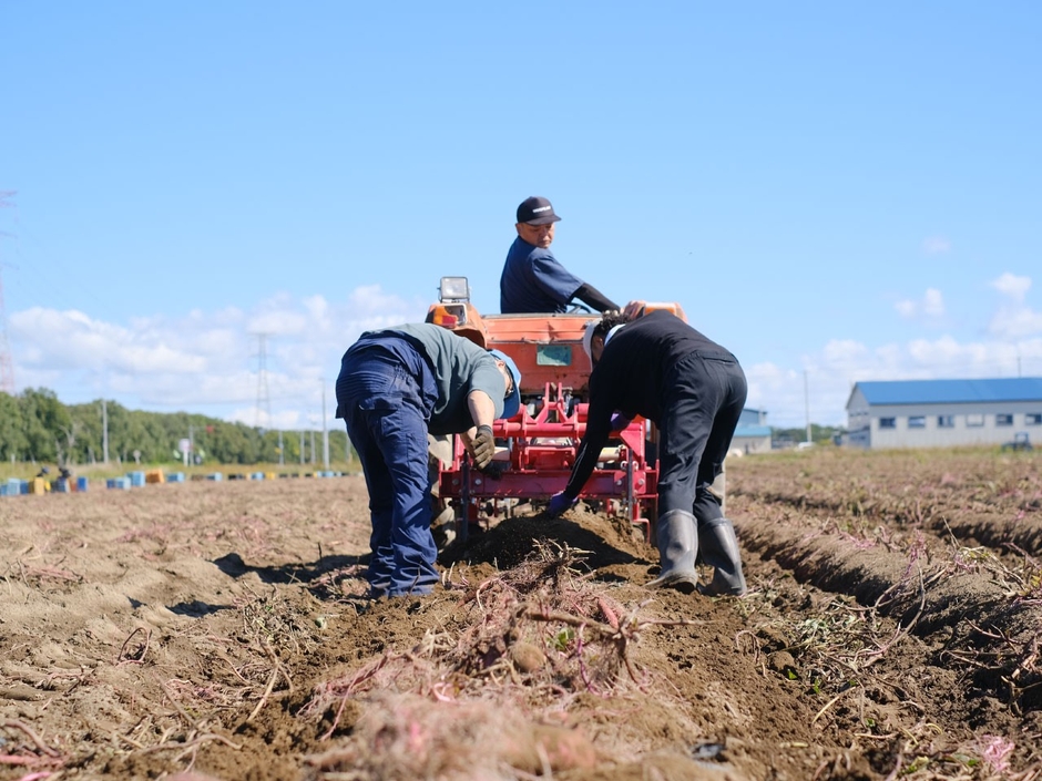栽培環境は、石狩平野の一角、生振地区の「水はけが良い砂地」というさつまいも栽培に最適な環境を活かしています。 収穫後の品質を左右する「キュアリング処理」から熟成・貯蔵まで、すべて長沼の自社倉庫内で厳格に温度・湿度を管理することで、北海道の厳しい寒さの中でも春頃までの安定供給を可能にしました。 また、美観と食味の両立にもこだわっており、自社で設けた厳しい選別基準をクリアしたもののみを出荷します。 芋の肌(皮)に傷を与えないよう、収穫時の機械調整から人力での作業に至るまで細心の注意を払い、贈答用にもふさわしい美しい見た目を追求しています。