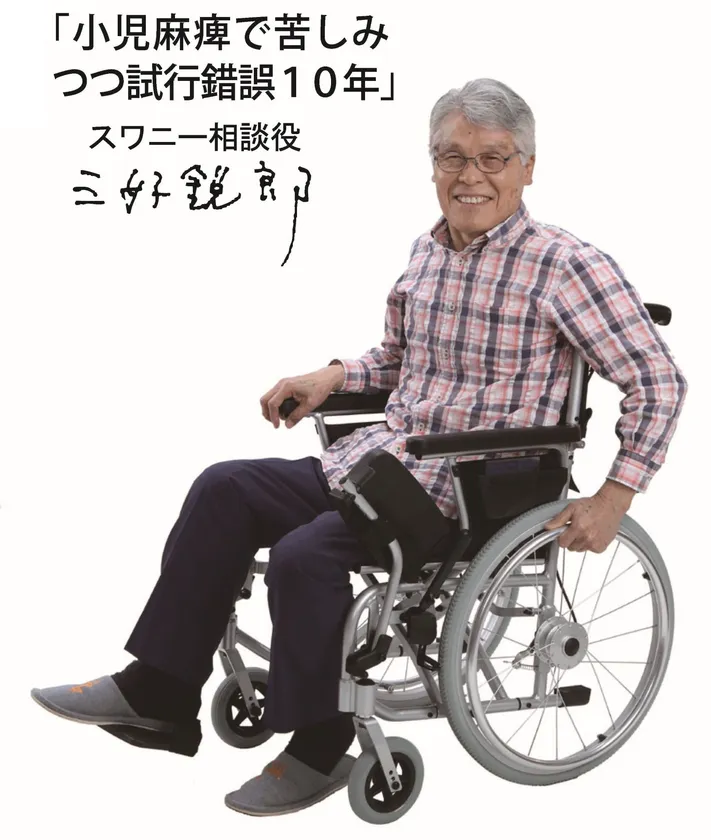 開発者の三好鋭郎は小児麻痺の後遺症から不自由な症状が進み、車いす生活をすることとなりました。そのなかで感じた不便を解消し、より快適な車いす生活をしたいという理想を叶えるために試行錯誤を繰り返し、世界最小クラスの車いす「Swany Mini」を開発しました。駅の改札や自宅の廊下などをスムーズに走行できるよう、市販品よりも走行時の幅を約6cm狭くしました。