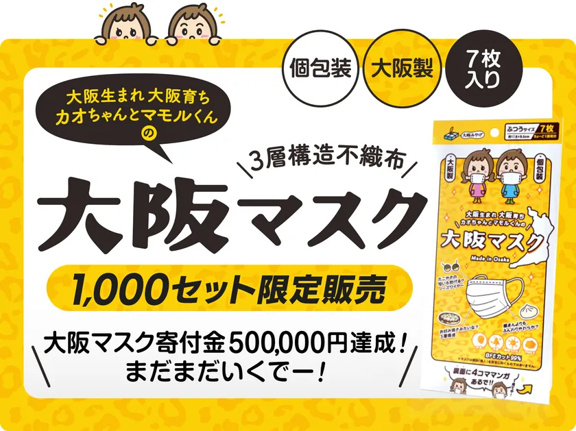 大阪生まれ、大阪育ちの「大阪マスクプロジェクト」より 「7枚入り袋タイプ」が新たに1,000セット限定販売で登場! ~「コロナ助け合い基金」への寄付は50万円達成~