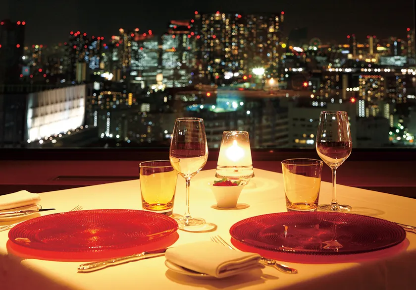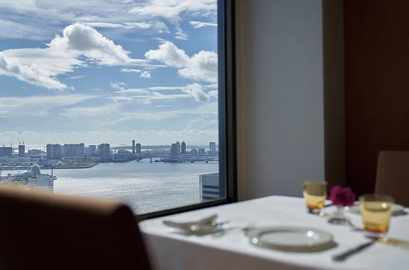 店内に一歩踏み入れた瞬間、目の前に飛び込んでくる東京湾と都会の絶景。日中は眩い輝きを見せる爽やかな東京湾も夕暮れとともにその姿を変え、日没とともに煌めく夜景が広がります。そんな景色とともに味わっていただく東京會舘伝統の味を集めたプランです。