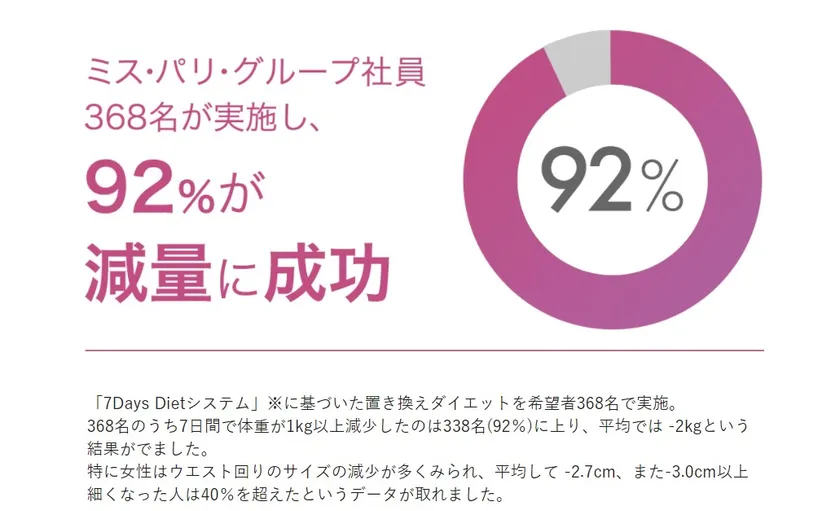 ◆ミス・パリ・グループ社員368名が一斉に「7Days Diet※1」にチャレンジ!