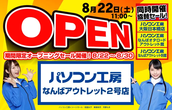 8月22日(土)ゲーミング中古PC、良品アウトレットを取り揃える 「パソコン工房 なんばアウトレット2号店」が大阪日本橋に新規オープン! 「期間限定オープニングセール」を開催!