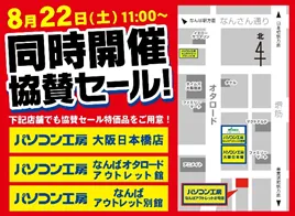 同日よりパソコン工房 大阪日本橋店など近隣の3カ店にて、協賛セールを同時開催いたします!各店、限定の特価品を多数取り揃えておりますので是非ご来店下さい。