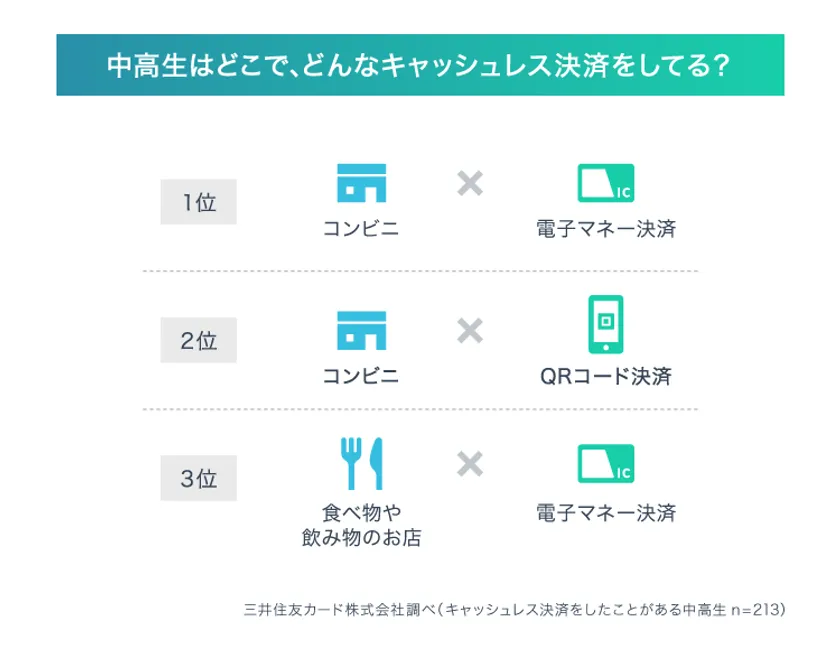中高生のキャッシュレス決済利用の1位はコンビニで電子マネー決済