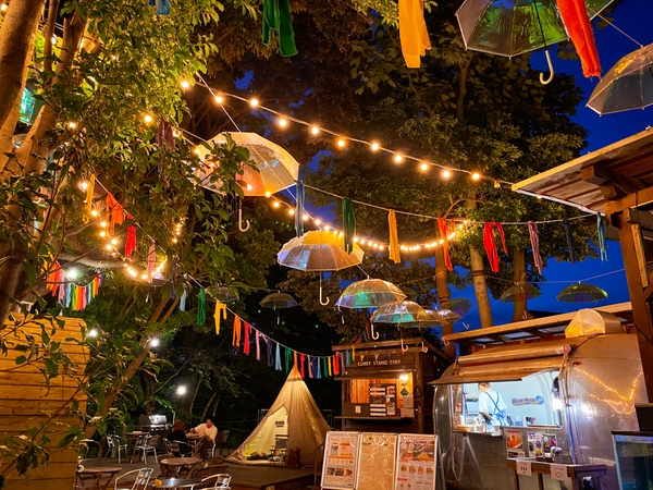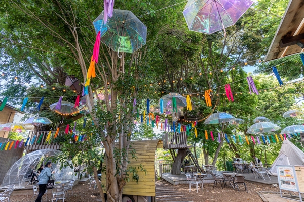 ツリーハウスをカラフルに彩る「傘の森」【椿森コムナとWpc.のコラボイベント開催】