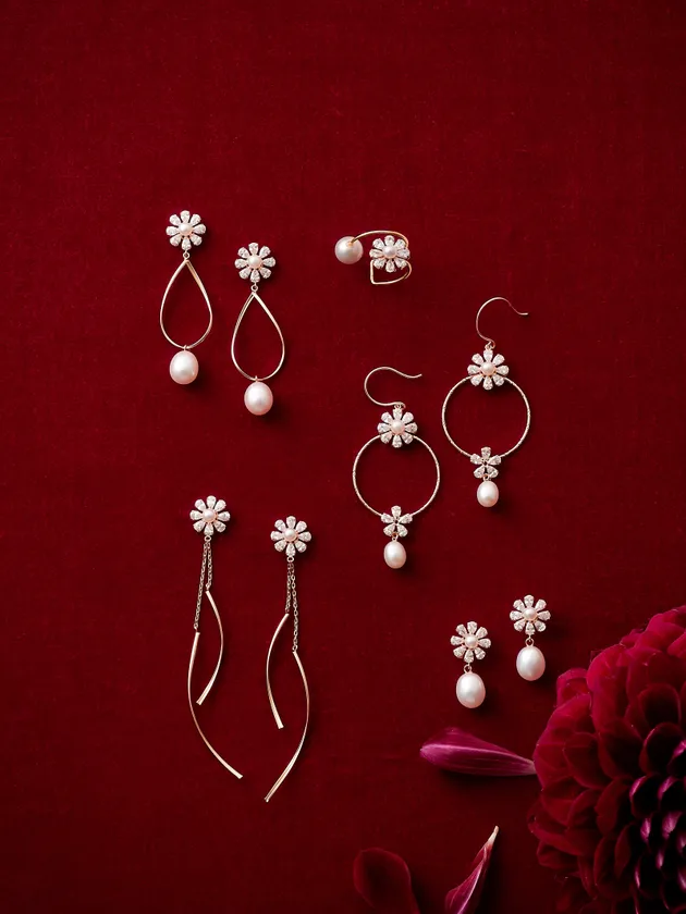 秋の深いお洋服に、きらっと明るい耳元を楽しんで。