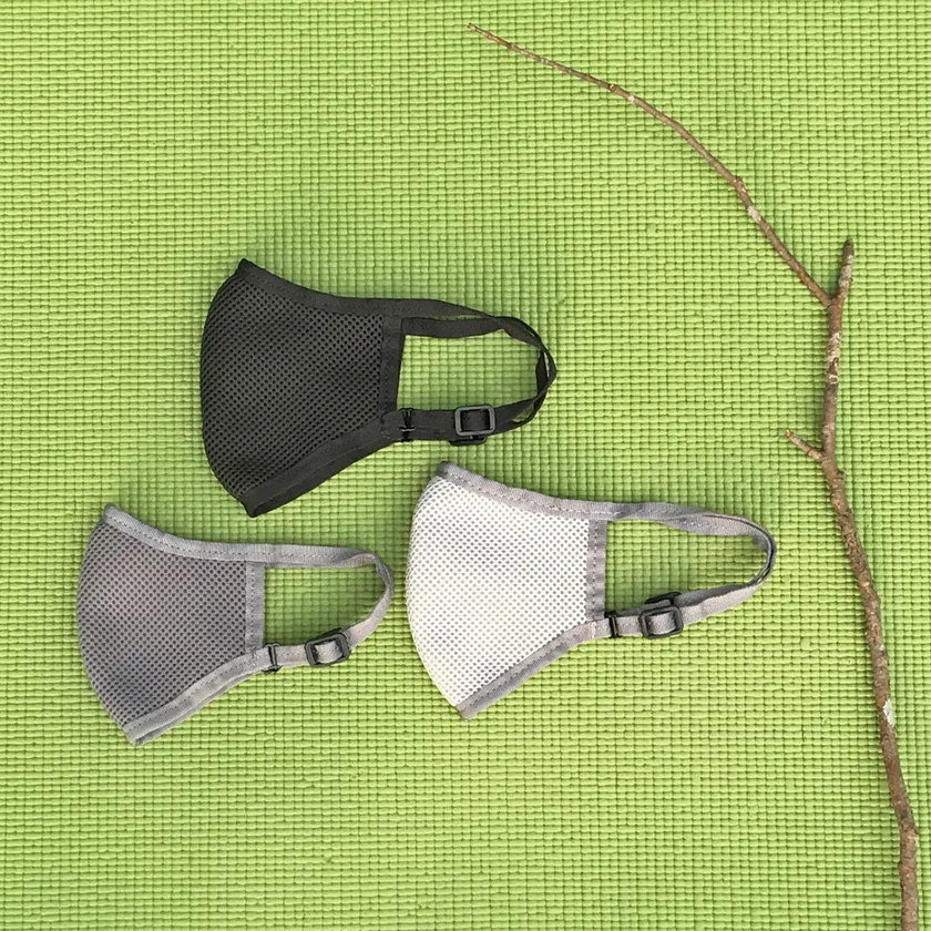 メッシュのみのマスクの場合、通気性は大変良くなりますが、さらに飛沫を防ぎつつ全てのシーズンでサラッと快適に行動できることを開発の目標としました。