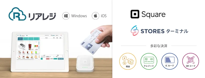 「リアレジ」はマルチプラットフォームでご利用いただける新しいカタチのクラウドPOSレジです。