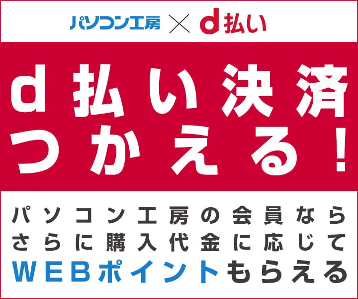 パソコン工房WEB通販サイトにて、d払い決済に対応! パソコン工房の会員なら、さらに購入代金に応じて WEBポイントがもらえる