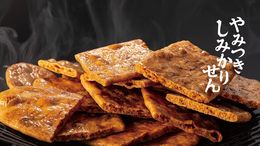 やみつきしみかりせんは焼きたての大判煎餅をあえて一枚一枚手で割り、秘伝の濃厚たれに漬け込むという非常に手間をかけた製法のため、何種類もの味の同時販売はいまだかつてない試み。やみつきしみかりせんをご愛顧いただいているファンの皆様に精一杯の感謝の気持ちを込めた特別商品です。