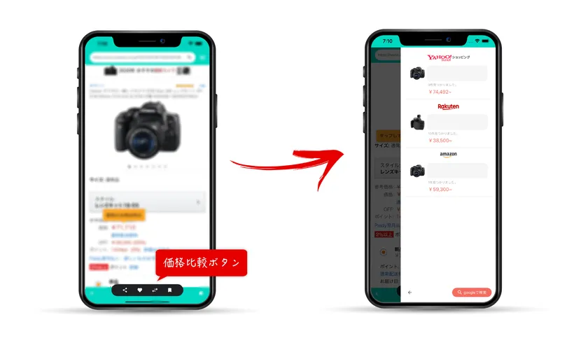 いちいちECサイトごとのアプリをいくつも開いて、商品名を別々に入力して検索し、アプリを切り替えて価格比較する……といった従来の面倒な作業はもう不要です。