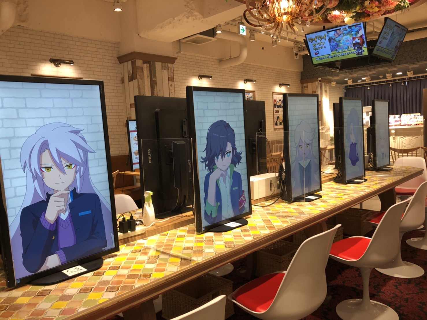 キャラクターの映し出されたモニターと向かい合わせでお食事をお楽しみいただけるカウンターのお席です。