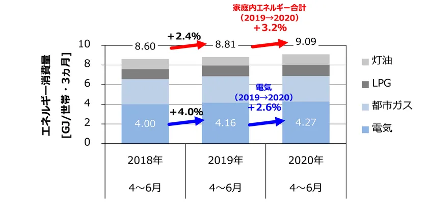 <ポイント1:4~6月四半期の世帯当たりのエネルギー消費量は9.09GJで前年同期間比3.2%増加>