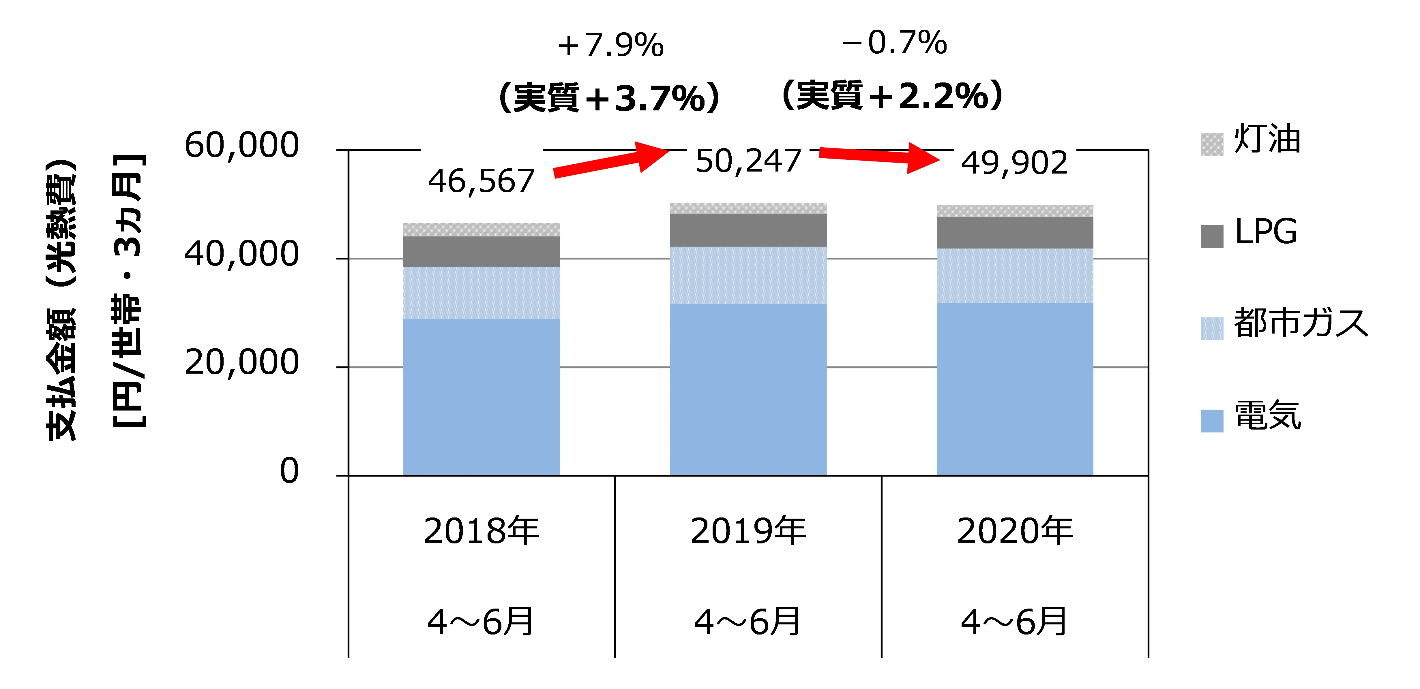 <ポイント2:4~6月四半期の世帯当たりの光熱費は前年同期間比で実質2.2%増加>