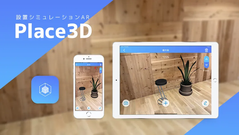 Place3Dは、現実空間に複数のCGを配置し、シミュレーションすることが可能な、スマホアプリです。