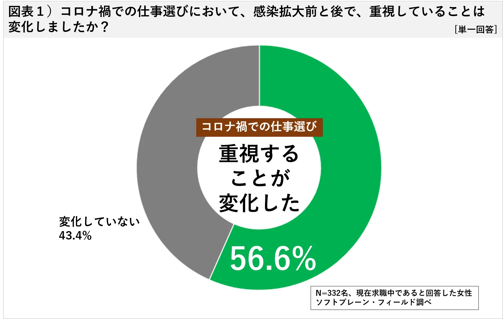 コロナ禍での仕事選びにおいて、感染拡大前と後で、「重視するポイントが変化した(56.6%)」と、およそ6割の方が回答しました。
