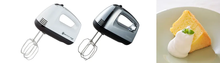 お菓子作りに大活躍!ABC Cooking Studioとの共同開発で 生まれた新ビーターを採用し、 より使いやすくなったハンドミキサー9月上旬新登場